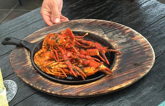 relleno de cangrejo, en salsa de chupe (el chupe es una sopa tradicional de