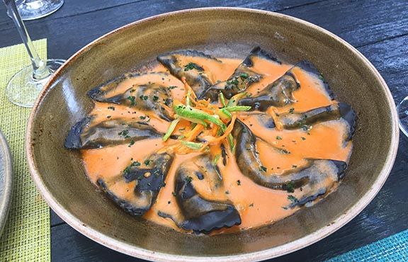 en Perú. Y sí, comimos ravioles. La masa oscura con tinta de calamar, y el