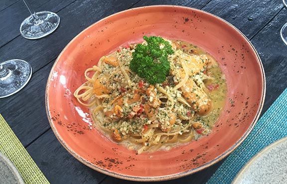 Sí, por favor. Unos tallarines saltados a la criolla, con pescados y mariscos al