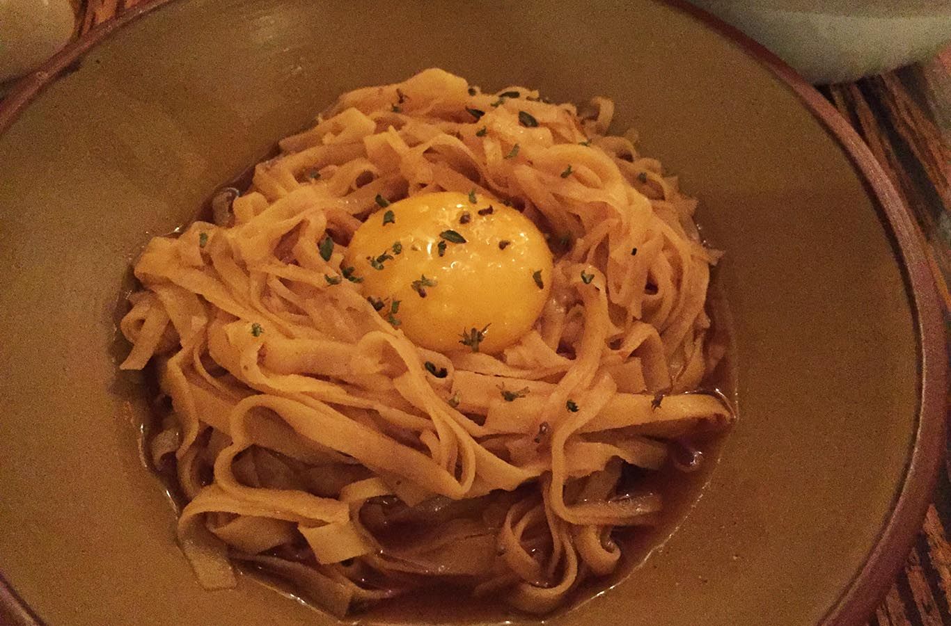 casera de conejo, repollo y pickles, un hueso de caracú al horno con tostadas,