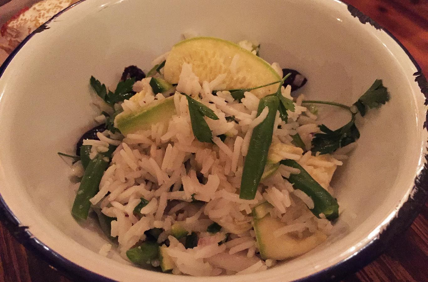 hongos, ensalada de arroz basmati, caponatta con huevo a la plancha, o un