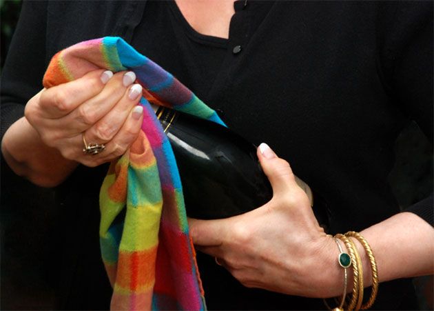 - Como siempre una parte de la botella queda afuera, lo que queda cerca del corcho está caliente y por lo tanto, hace presión para escaparse y vuelve incontrolable el corcho. Lo mejor es enfriarlo bien de ambos lados y/o hacer girar la botella (rotar sobre su eje horizontal y vertical) para que la temperatura se unifique. Cuidado con la fuerza porque dentro de cada botella hay 5 o 6 veces el tamaño de la botella de aire atrapado.