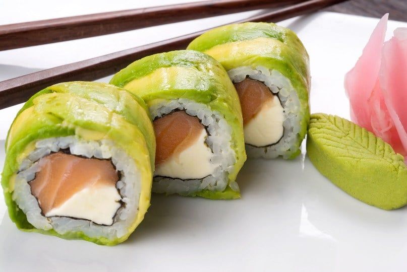 -Geishas de salmón, palta y cream cheese.