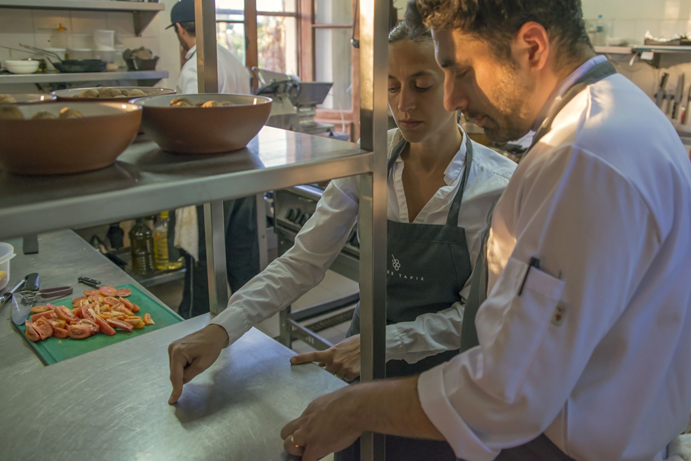 Soledad Nardelli y Sebastián, trabajando en la cocina de Club Tapiz.