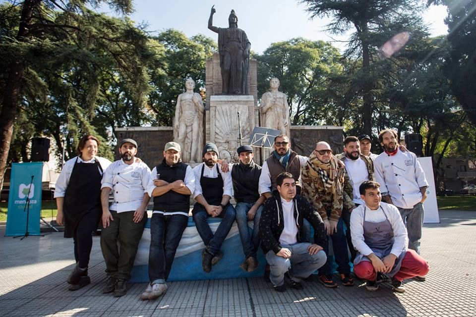 salir a comer o quedarse en casa? Sebastián junto a sus compañeros de COME (Cocineros Mendocinos) en el locro solidario anual.