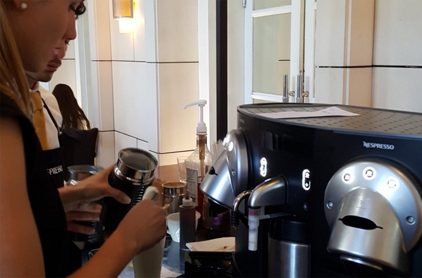 Nespresso y la pastelería de Hyatt en un exclusivo evento. El sábado pasado se realizó el cierre de Coffee & Milk Tour de Nespresso en Las Terrazas de Park Hyatt Mendoza. Aromas, sabores y sensaciones, entre buen café y la riquísima pastelería del Chef Pastelero Walter Godoy. Los asistentes al evento pudieron degustar la colección de blends de Nespresso: Wake Up Wonder, Sweet Treat, Caramel Latte Macchiato y Choco Cookie Macchiato. Estos exquisitos cafés se maridaron con brownies, tarta de manzana, y macarons entre otras delicias. Estas combinaciones ya se pueden degustar en Las Terrazas de Hyatt todos los días de 9 a 12 hs. (expresso con 2 croissants y jugo), o todos los días de 14 a 18 hs (café doble con porción de brownie, capuccino con tarta de manzana, espresso con dos alfajorcitos de miel, o expresso con 2 macarons).