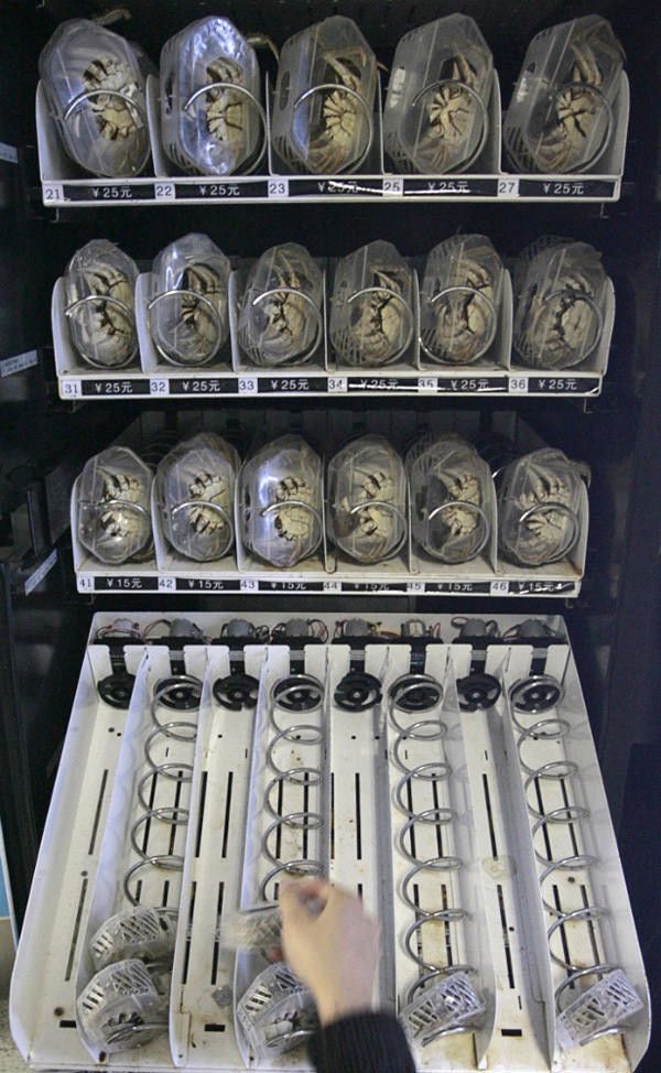 La podemos encontrar en Nanjing, China y mantiene una temperatura interna de 5ºC para mantener a los cangrejos en un estado de hibernación sin llegar a matarlos. La compañía se compromete a compensar con tres cangrejos vivos si de la máquina sale un cangrejo muerto. Algo es algo.