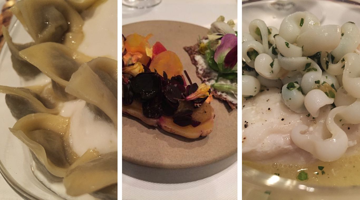 Hablando directamente de la comida, ayer fue liderada por la jefa de cocina del lugar, Mercedes Solís, ya que Germán Martitegui estaba de viaje. Arrancamos con una copa de espumante al entrar y luego un abreboca de tres bocados.