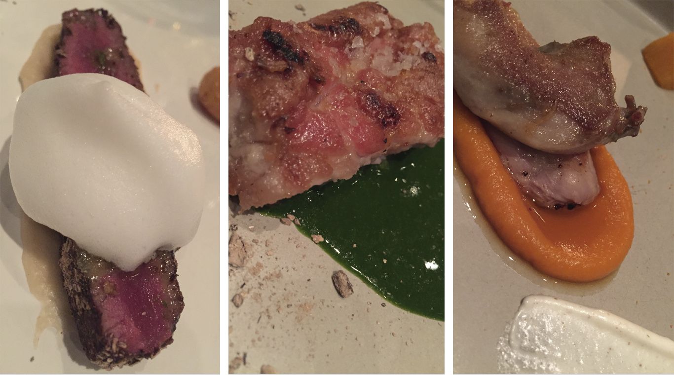Seguimos con la perdiz y se mantuvo el nivel. La cocción magnífica conservando jugos -otra vez la técnica perfecta- y el puré dulce de naranjas sanguíneas, con una profundidad de sabor notable y sin resultar ni desequilibrado ni invasivo, dos grandes riesgos en este caso que la cocina de Tegui sortea con inteligencia y virtud.