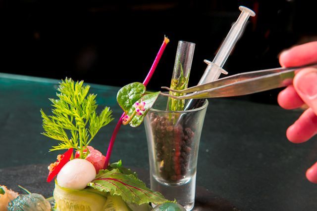 Una de las técnicas más destacadas de la gastronomía molecular es la esferificación, en la que se busca conseguir un efecto similar a la textura del caviar. Lo que se hace en esta técnica es lograr encerrar dentro de una esfera diferentes líquidos, por ejemplo salsas, jugos o condimentos.