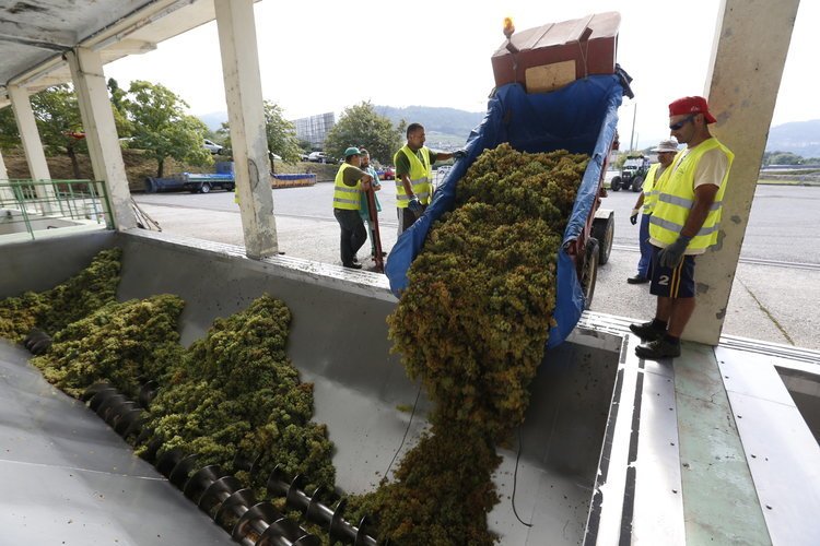 Cuando el camión llega a la bodega, descarga directamente en el lagar toda la uva. Normalmente se pueden cosechar de 4.000 a 6.000kg dependiendo el tamaño del chasis.