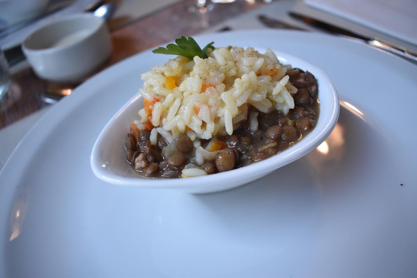 El primer paso, lentejas con arroz. Esta de la foto es media porción, ya que pedimos ese plato compartido con otra persona.