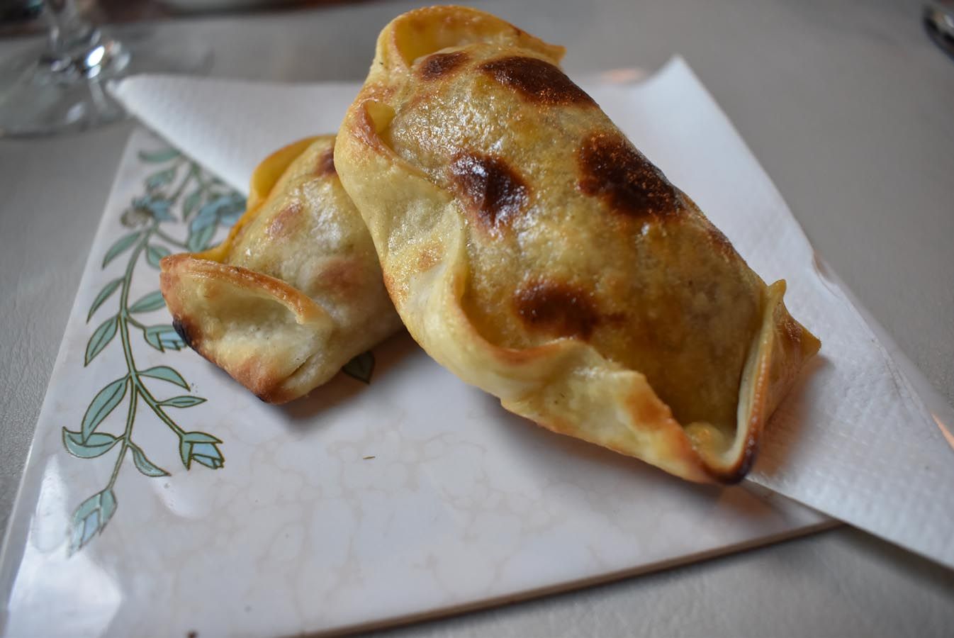El segundo paso, una empanada de carne al horno de barro, tradicional, sabrosa, que no le faltó jugo ni condimentos. La cebolla la desfleman, me consta.