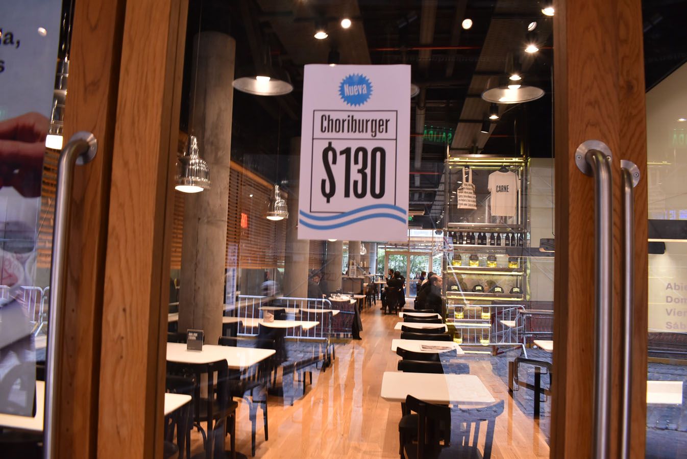 Para el Mundial de fútbol ofrecieron una hamburguesa 100% de cerdo, con pan redondo, con una corteza similar a la baguette o pan francés: El "Choriburger" ($130).