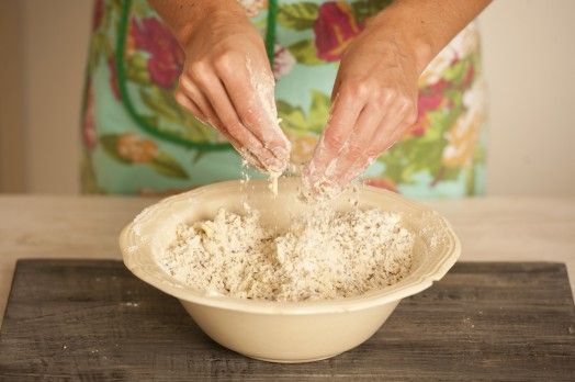2# Se añade el agua fría, se enciende nuevamente la procesadora y se procesa hasta que se forme un bollo de masa. Se estira con un palote sobre la mesada ligeramente enharinada hasta lograr un grosor de aproximadamente medio centimetro.