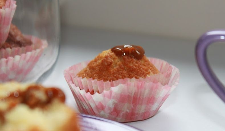 Magdalenas calentitas y esponjosas, rellenas de dulce de leche