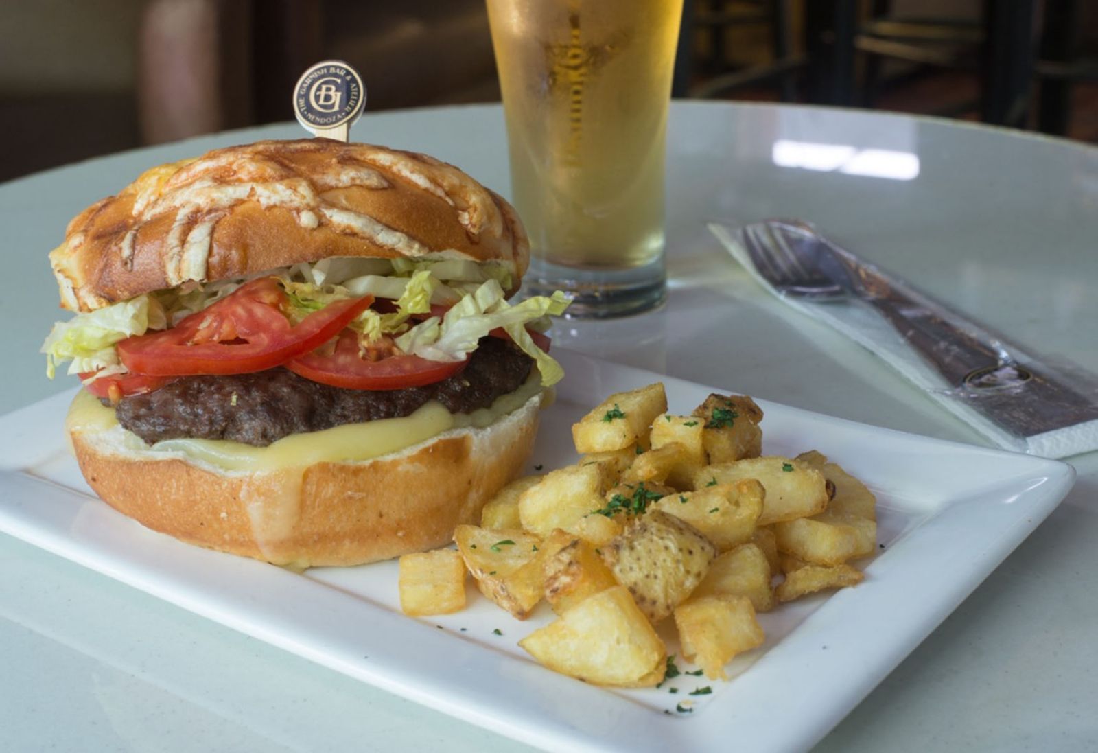 Se trata de una hamburguesa con carne madurada de Eria (emprendimiento local de chefs mendocinos). El lanzamiento se llevó a cabo esta semana, maridando con un cocktail Primavera Mendocina con vermú rosado Lunfa (de Pinot Noir y Sauvignon Blanc del Valle de Uco). El nuevo plato se trata de una hamburguesa de 200 gr cuyo medallón está elaborado con dos cortes de carne -ojo de bife y bife de chorizo- de 60 días de maduración, con pan de queso y papa, doble queso, tomate, lechuga, y acompañada de 3 dips. En mayo también incorporarán cortes como bisteca y ojo de bife con 60 días de maduración, y la línea de charcuterie como el salame de toro, bresaola, y patrami ahumado. The Garnish Bar sigue renovándose desde que abrió sus puertas en septiembre del 2020 en la calle Colón 670 de Ciudad. Sabrina Rodríguez Cuack y Gonzalo Palacio son los propietarios de este lounge bar temático de estilo europeo. Con el objetivo de seguir creciendo en la coctelería y gastronomía es que en estos últimos meses The Garnish Bar amplió su carta de comidas y horarios. Así es que abre desde las 9 de la mañana con desayunos, almuerzos y cenas. También, durante todo el día hay opciones de brunch y picadas brindando así una propuesta de coctelería que se acompaña con tapeos y maridajes. Entre los platos para el mediodía, se destacan diversos sándwiches, ensaladas, y carnes con acompañamientos. Además, se encuentra con un menú ejecutivo con elección de platos principales, acompañados de cocteles o mocktails (cocteles sin alcohol). De lunes a viernes de 16 a 18 hs ofrecen "las horas re contra felices" con 2 cocteles por $500*. Y todos los lunes a las 20 hs hay catas de whisky del mundo.