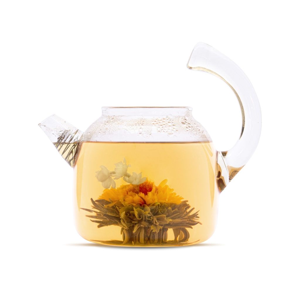 Lo ideal es utilizar tetera y tazas transparentes. Aunque no es 100% necesario. La ventaja será ver ante los ojos el despliegue de la flor y cómo el té va tiñendo el agua, que ya en ebullición, entra en contacto con el delicado té.