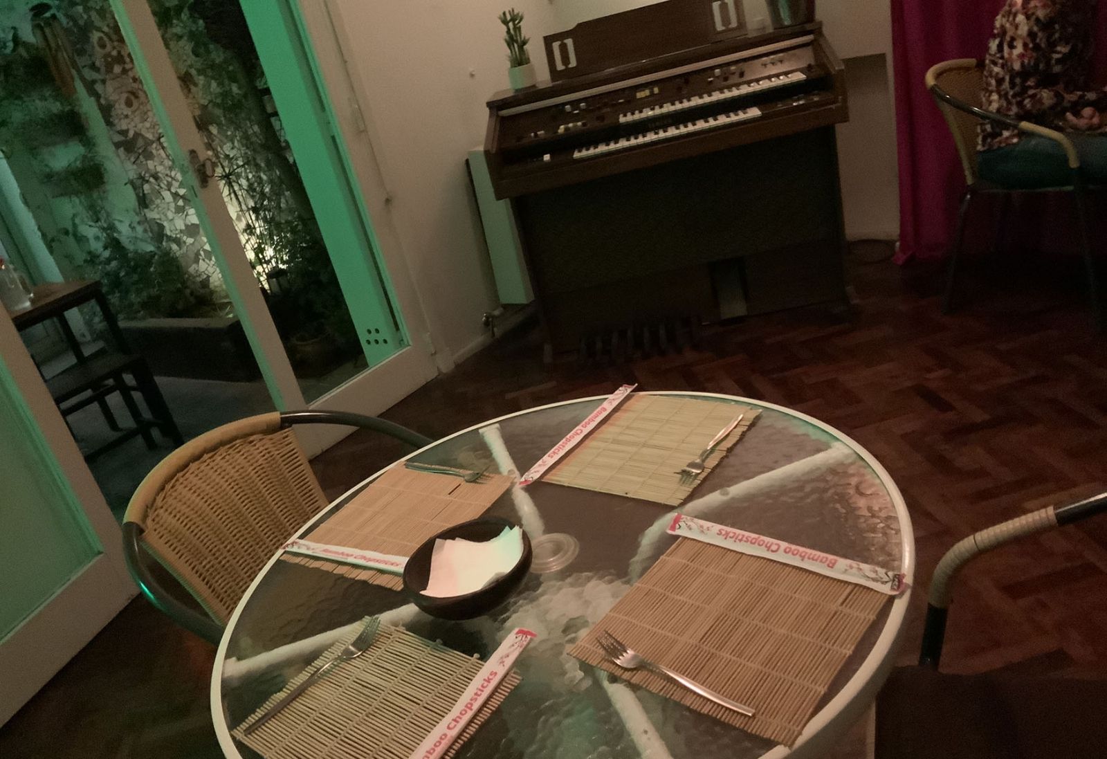 Este restaurante lleva funcionando casi dos años. Comenzó como almacén, y luego fueron ampliando a delivery, take away y restaurante con mesitas. Es pequeño, ambientado con luces tenues de colores, una deco ecléctica, y un tanto vintage. Tiene su “onda”, a mi me gustó mucho. Por momentos recordé los relatos del famoso cocinero Anthony Bourdain (del programa Sin Reservas y el libro Viajes de un Chef) con sus relatos gastronómicos del Sudeste Asiático.