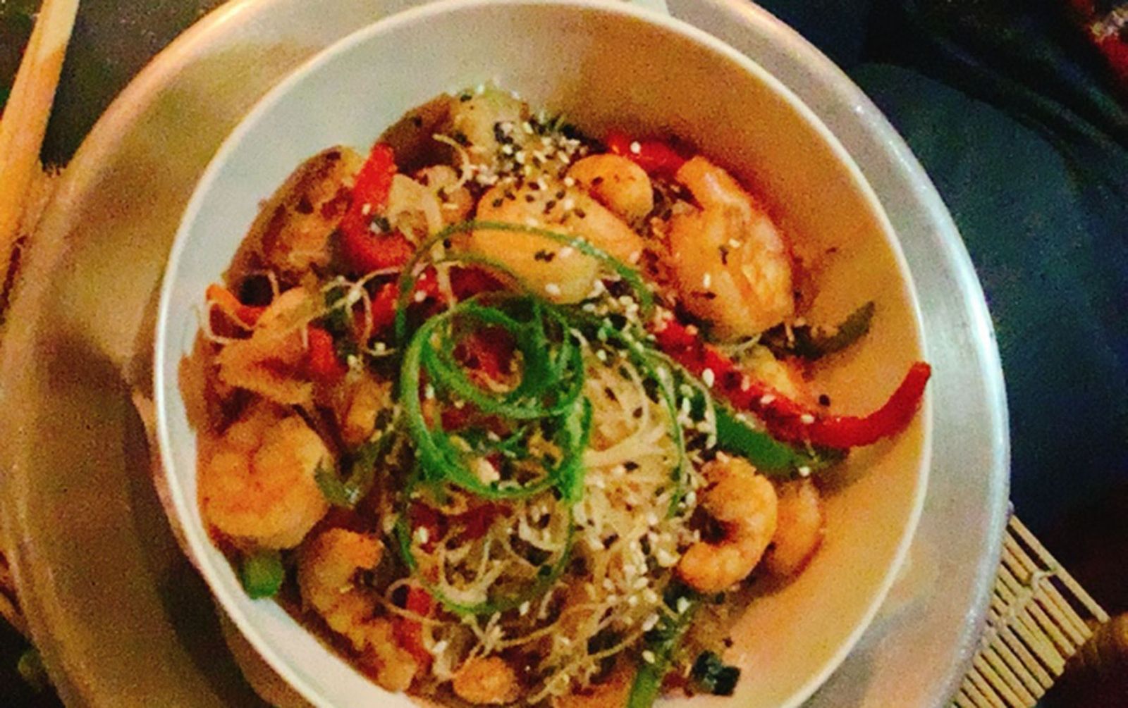 El otro plato principal fue el Chow mi fen. Se trata de un salteado con fideos de arroz finitos (tipo cabello de ángel) con vegetales. Puede ser de cerdo, res, pollo, veggie o langostinos ($365* a $479*). Pedimos el de langostinos.
