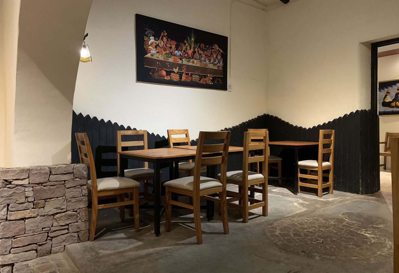 El caserón antiguo está ambientado de manera simple, al modo de una fonda, con mobiliario de madera básico, algunos tapices y cuadros alusivos a Perú y su cultura, con una iluminación básica. No esperen encontrar un salón lujoso. No, lejos de eso. Sí parecía que estaba todo muy limpio, y eso es importante realmente.