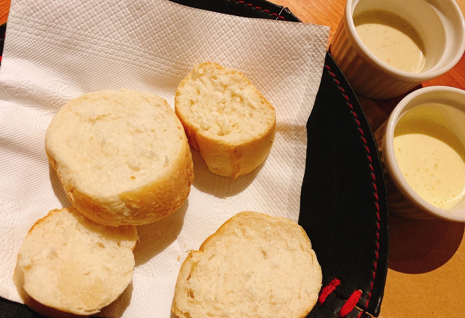 - La panera con 4 mínimas rodajitas de pan