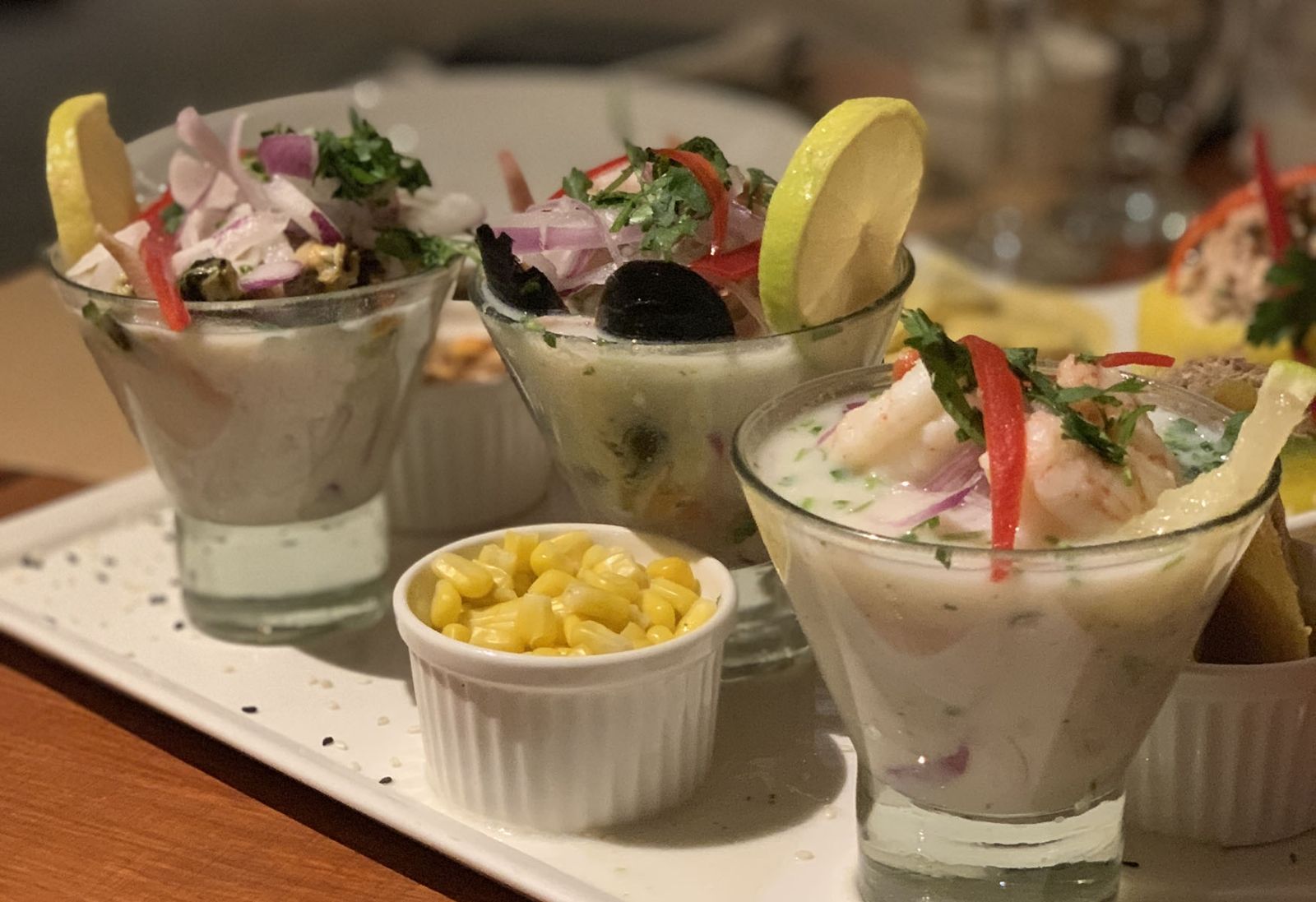 Comenzamos con una degustación de entradas ($500*) que tenía Choritos a la Chalaca, Causa Limeña y Papas a la Huancaína. Personalmente me encantó la Causa, cuyos sabores son similares a nuestra “Mayonesa de Ave”.