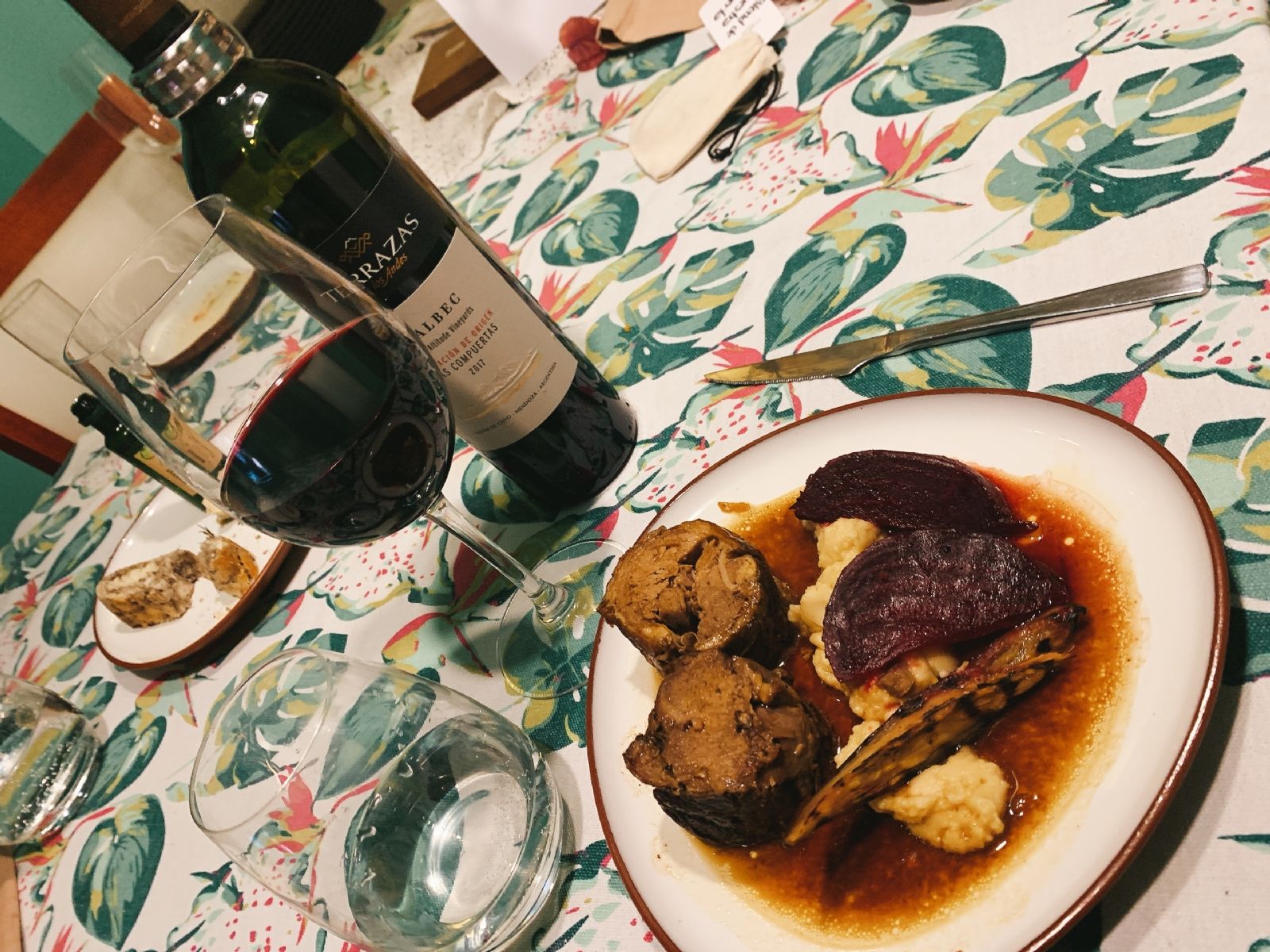 Por supuesto hay adaptaciones del menú para celíacos (en realidad casi todos los platos ya son sin TAAC), y para vegetarianos. La entrega se hace a domicilio un día antes por lo general, y es optativa la conexión a Zoom para compartir la velada.