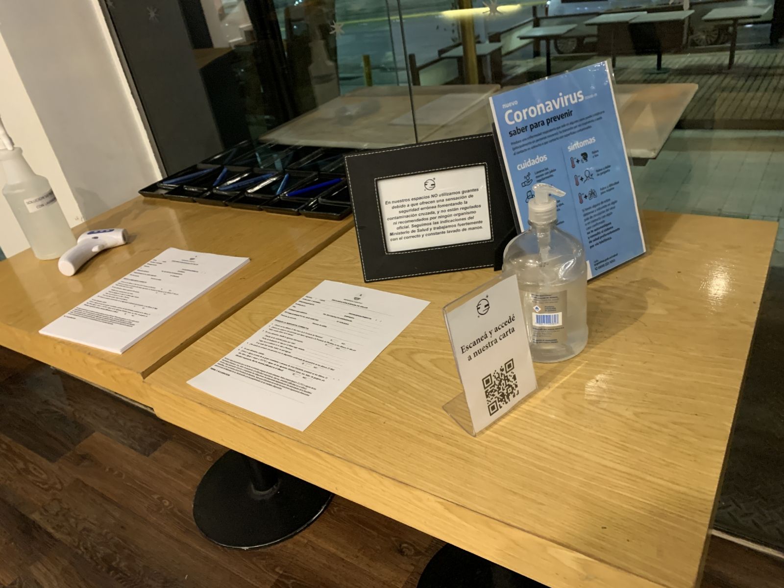 En todos los casos se respetaron las normativas del protocolo de seguridad: alfombra sanitizante al entrar, alcohol en gel en el ingreso y en las mesas, carta online, y camareros con tapaboca ubicados a distancia prudencial. Y también me tomaron la temperatura.