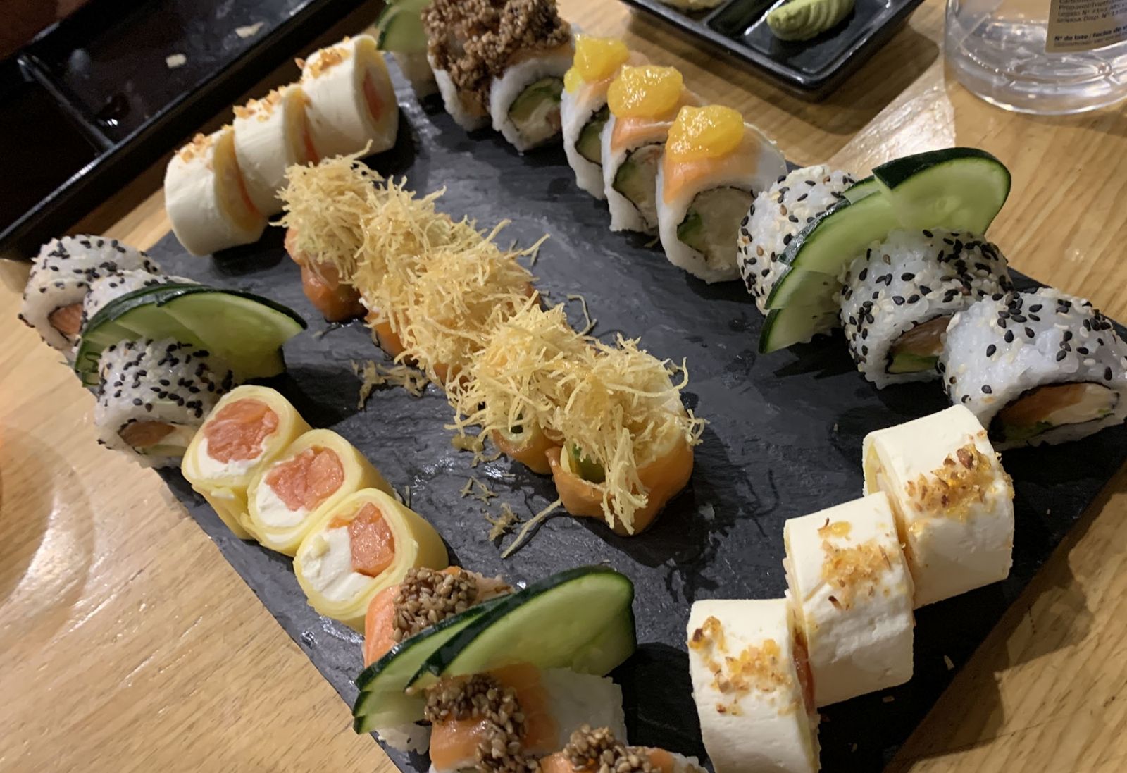 Las variedades incluían 3 tipos de rolls calientes apanados con panco, con salmón picante, langostino crocante, mostaza y miel. Además fríos: con tamago (como un panqueque dulce), langostino crocante, queso picante y ácido con lima, con batata crujiente y salsa de mango; California (con kanikama y pepino); con salmón, palta y philadelphia; y un vegetariano con queso camembert, espinaca fresca crujiente, y palta, entre otros. Hay algunos postres disponibles para terminar la noche con un final dulce.