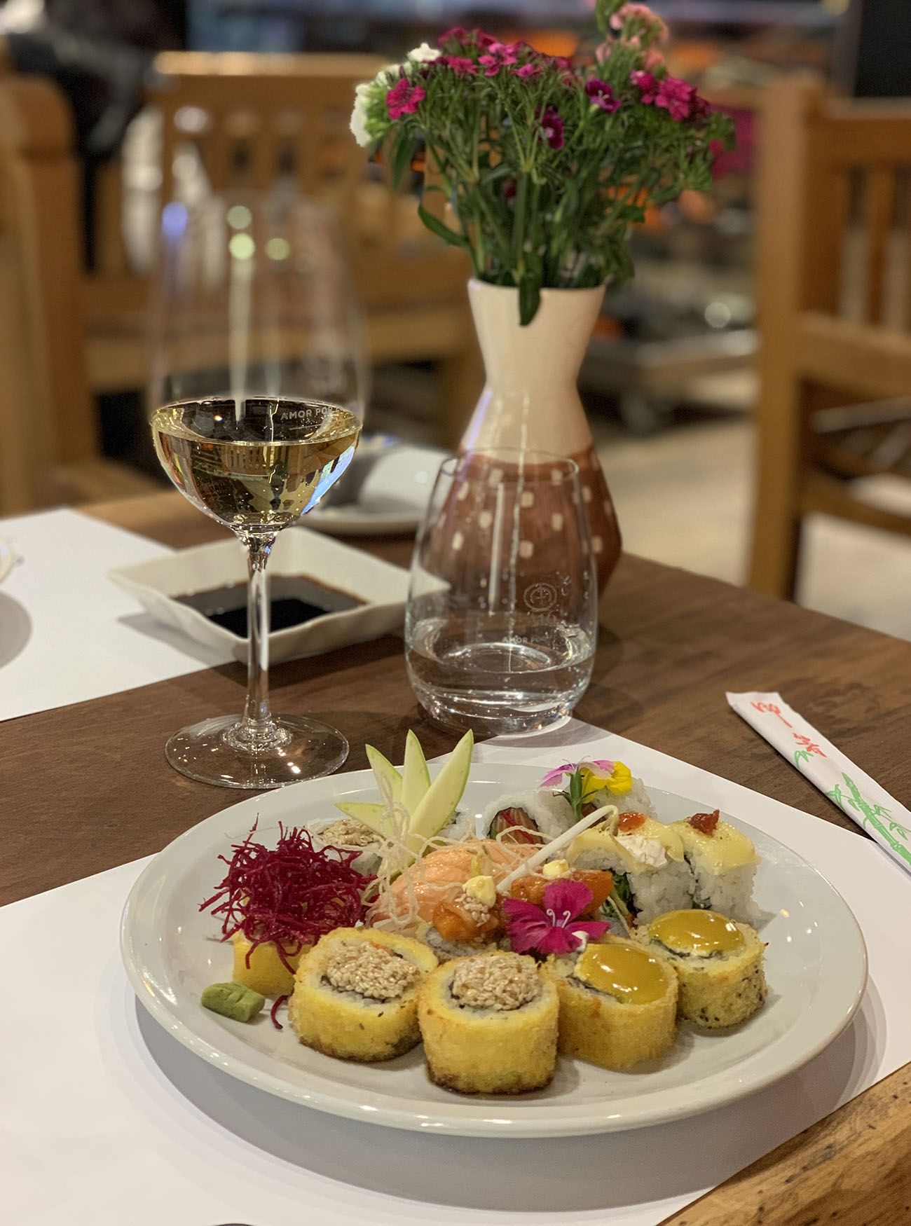 La propuesta tiene un. Costo de $1500* con 20 piezas y una botella de espumante o riesling. Ideal para compartir, y pedir alguna otra cosita, ya sea una entrada o un postre. La selección de sushi incluye 4 variedades: New York, langostinos y palta, Sake grill (salmón cocido y queso philadelphia) y Teri roll (con salmón fresco, lima y salsa teriyaki. Acompañamos con un riesling de LoSance.