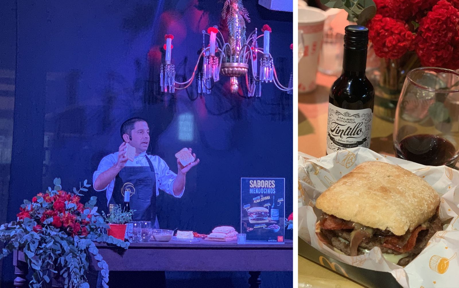 En un ameno evento en la sucursal de Palmares, el chef Ariel Gravano presentó la nueva creación en una mini clase de cocina en vivo. El chef asesor de la cadena de hamburgueserías en Latinoamérica, explicó los ingredientes y cómo se elabora este sándwich, cuyos principales diferenciales son el pan ciabatta y las cebollas con una reducción de Malbec y frutos rojos; y se completa con doble carne, cheddar blanco, y una mayonesa balsámica con orégano y bacon crocante. El combo viene con papas fritas (y optativamente con cebollas caramelizadas con salsa reducción de Malbec) y un Tintillo de Bodega Santa Julia (Malbec y Bonarda). Este menú se puede consumir hasta el 31 de marzo en todos los locales de McDonald´s de Mendoza por $490, y con $50 más el “upgrade” de las cebollas caramelizadas en las papas.