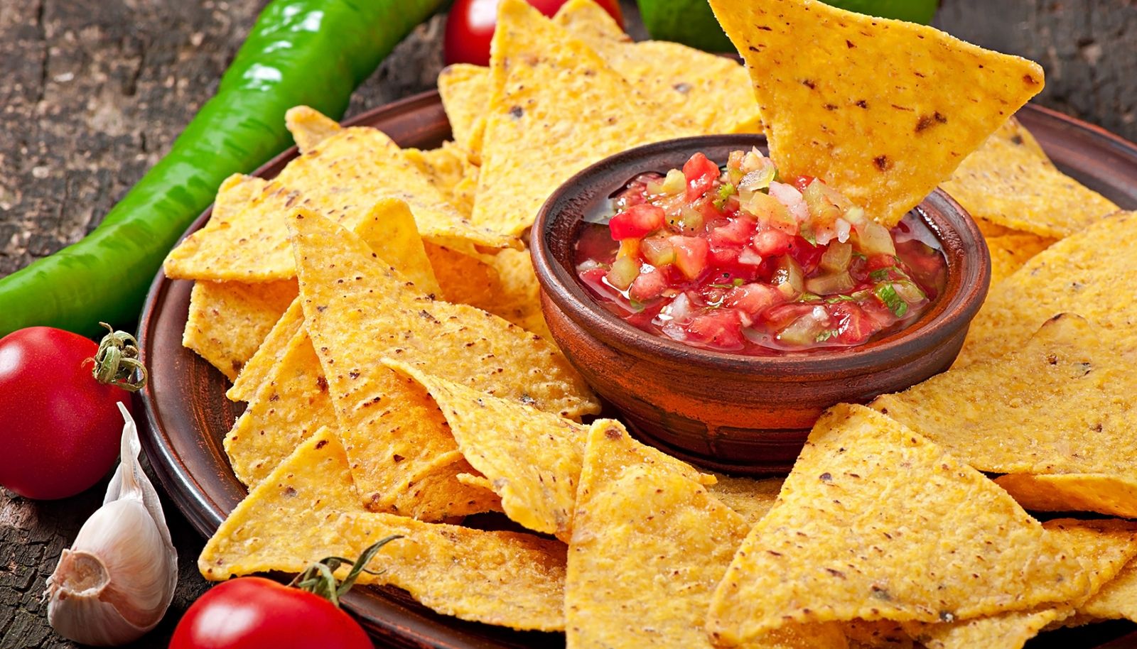 Los nachos son tan ricos y adictivos como las papas de bolsa. Están hechos con harina de maíz y a veces también con harina de trigo. Son en ocasiones recortes de tortillas, es decir la masa que se utiliza para los tacos. Suelen comerse como aperitivo, en una picada, o para comer compulsivamente mientras se disfruta de una película. Esta versión con guacamole es un plato vegetariano, y si se hacen con harina de maíz también son aptos para celíacos.