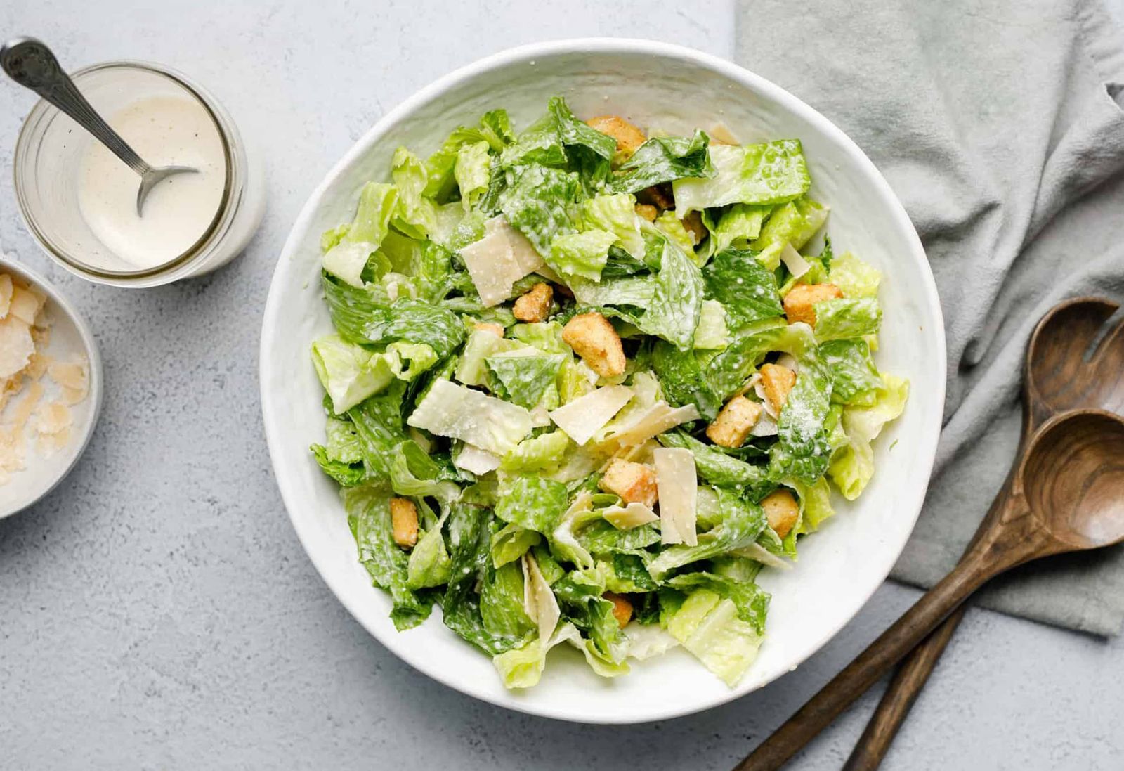 La clásica ensalada César (o Caesar) no lleva pollo. Solo está compuesta de lechuga, crouttons, queso y un aderezo con el sabor y la potencia necesaria para hacer inolvidable este plato. En la receta de hoy le vamos a agregar pollo.
