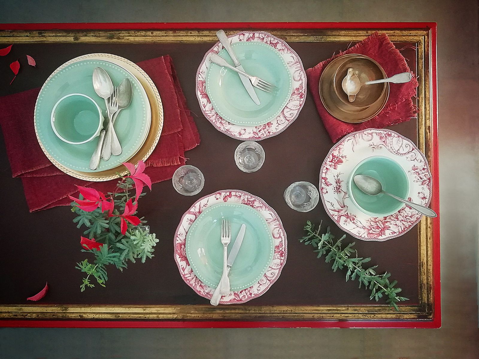 ¡Podés sorprenderte de lo que encuentres! los cubiertos de tu abuela, aunque no sean todos iguales, ¡todo vale! Cada pieza puede ser única y eso le aporta un distinguido valor, platos antiguos, cacharros, loza, porcelana, bowls enlosados ¡que son divinos! ¡Acá se trata de encontrar la belleza que puede tener cada utensilio y combinarlo de la mejor manera para sacarle todo su potencial de belleza! ¡El eclecticismo funciona también en cuanto a la vajilla!