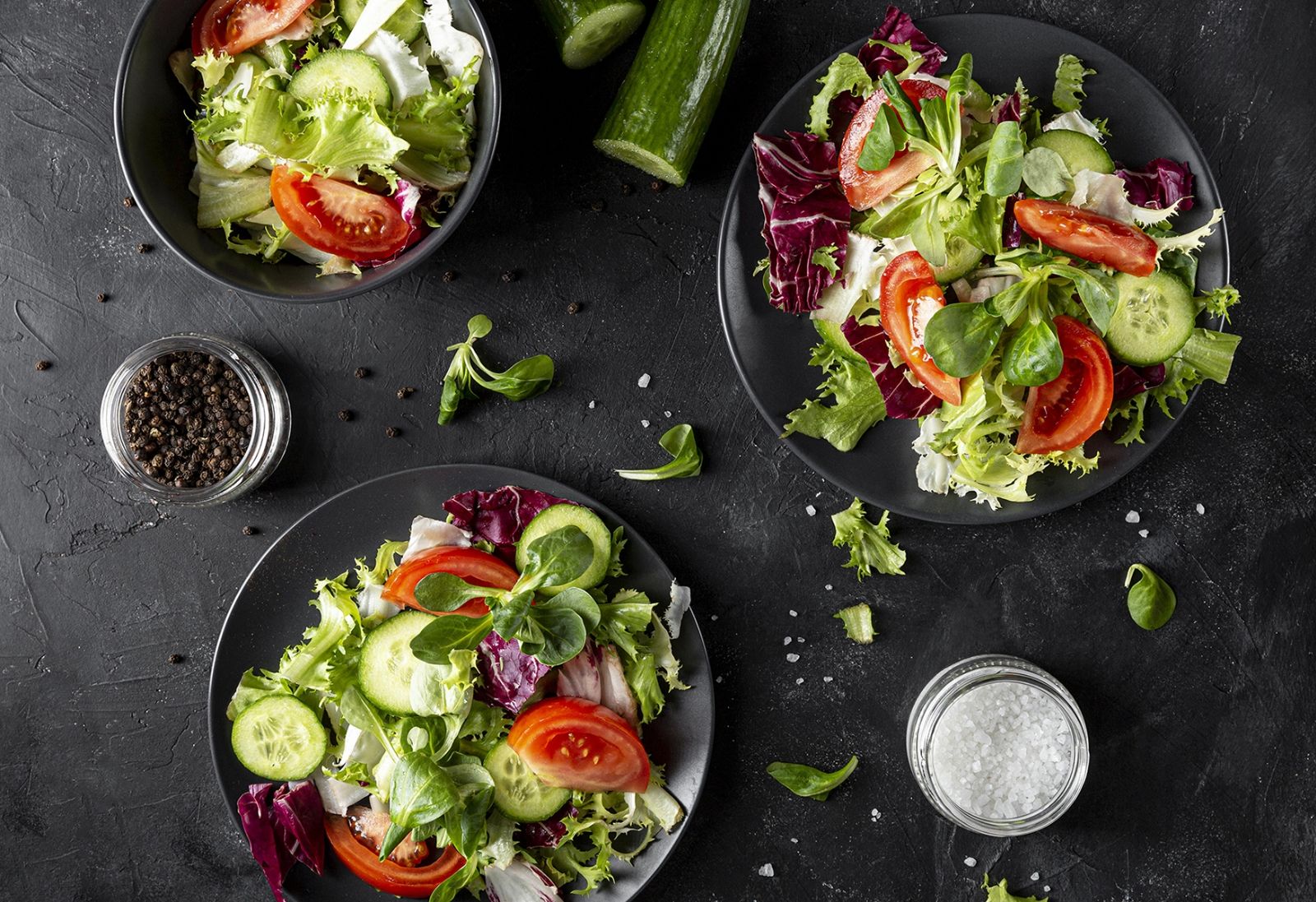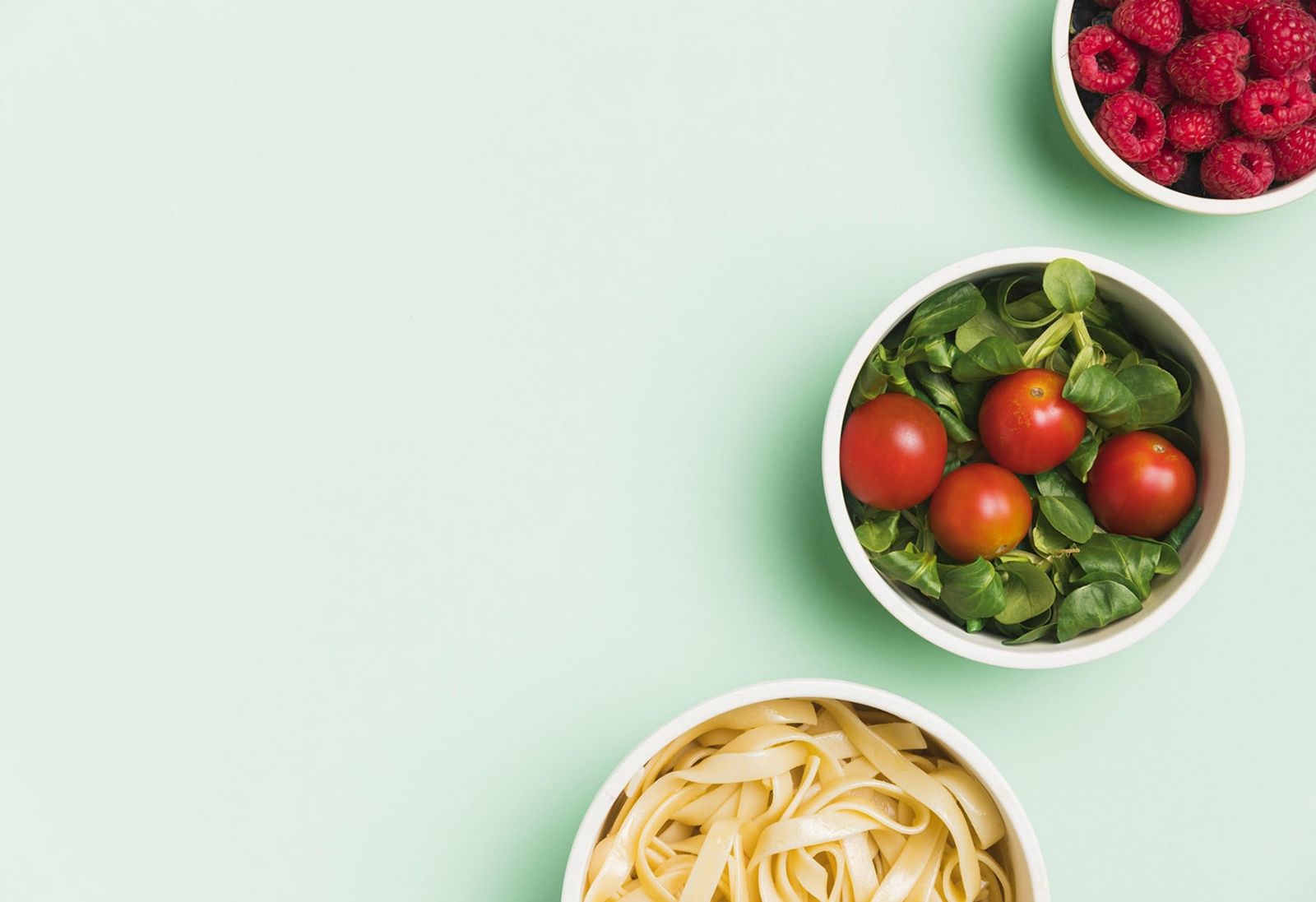 Podés utilizar tres elementos para trazar una diagonal imaginaria y crear una composición interesante donde no todos los alimentos se vean completos, sino que podés sacar algunos fuera del cuadro fotográfico. Recordá que el uso de las líneas en las composiciones y la fuerza que tiene la diagonal en la imagen, potencia la generación de más tensión y por ende mayor atracción visual.