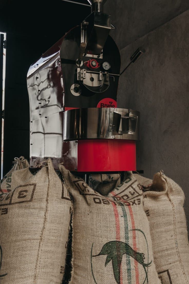 Expliquemos un poco. El tostadero recibe el café en grano verde, con todos sus procesos del caficultor, que le dan un perfil al café, esa semilla, que tiene que tener aproximadamente 10% de humedad, la vamos a introducir en nuestra tostadora, que puede ser de distintos tamaños. Van de 1kg hasta 200 kg por ciclo. Y están las antiguas que trabajan con “bocha”, a gas o leña, como también las modernas y tecnológicas, con métodos infrarrojos y sistemas computarizados que ayudan a obtener la calidad óptima. Para dar una analogía incorrecta, que puedan imaginar, es un horno industrial, que en su interior tiene un tambor como el de un lavarropas, que va girando para que el café se tueste de forma uniforme.