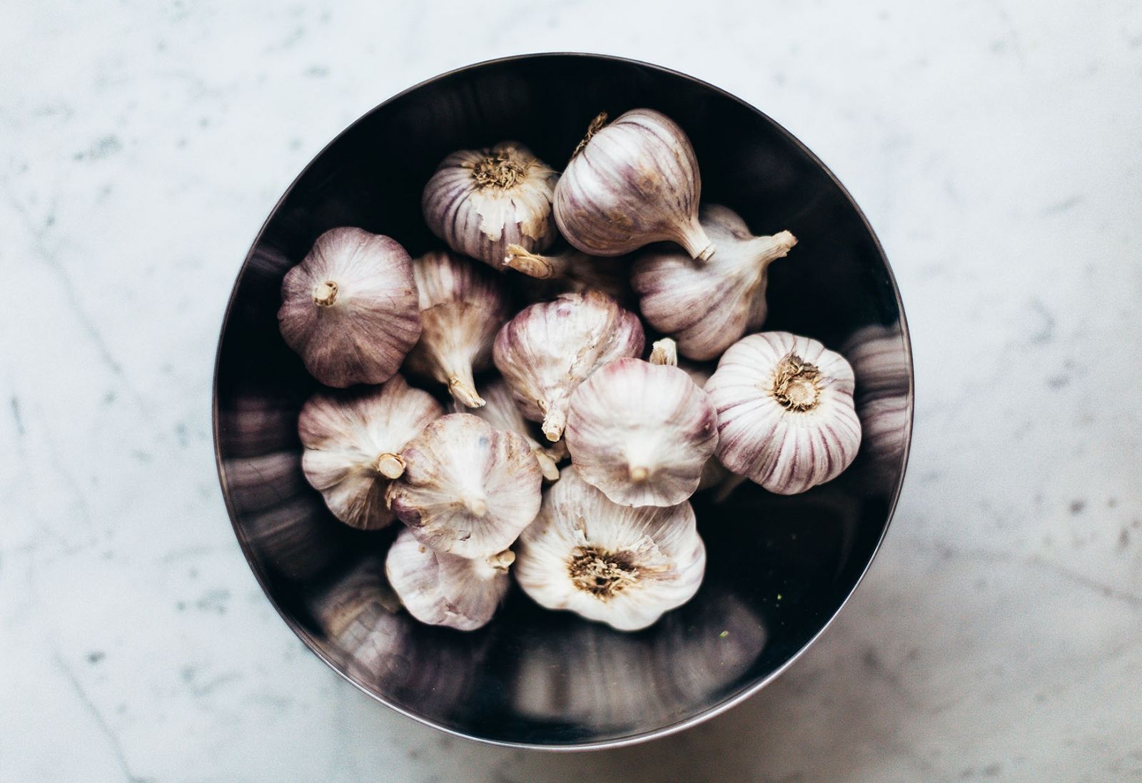 El ajo posee Vitamina B6, aceites esenciales, fósforo, cinc, hierro, selenio, y fósforo. Es un gran agente microbiano, y tiene el poder de aumentar la producción de leucocitos. Además combate parásitos y bacterias, hongos y virus. Completísimo. Por eso se puede utilizar para combatir infecciones e intoxicaciones alimentarias, o también sirve para atacar un resfriado. Por otro lado, también sirve para bajar los niveles de colesterol, y reducir las probabilidades de formación de tumores.