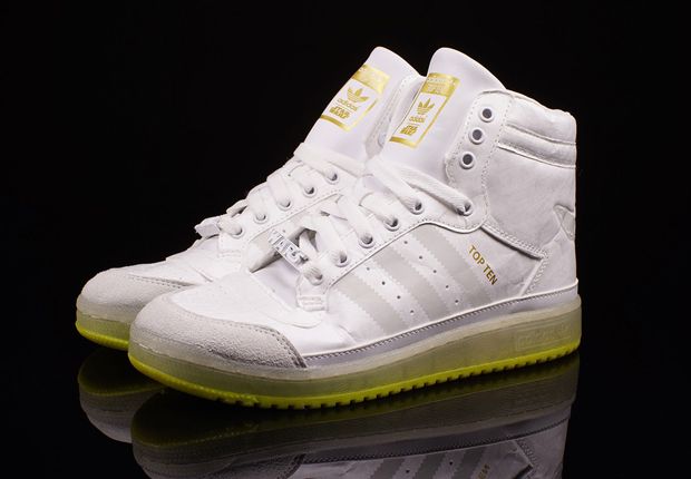 Los amantes del maestro Yoda elegirán los Adidas Top Ten Yoda Kicks, un par de sneakers urbanos de caña alta, blancos y con micro alveolos que favorecen la ventilación. La primera fila de los cordones comporta una mención “Star” en relieve, y la suela gruesa, en goma flexible y robusta, se exhibe en amarillo fluo.