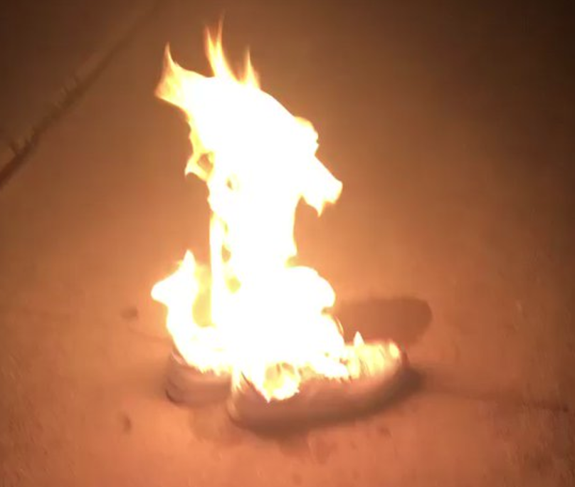 Quemar zapatillas New Balance, símbolo de protesta contra Trump