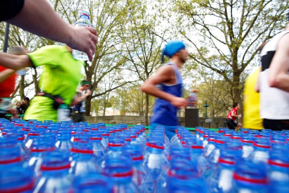 En la maratón, la clave para terminar la prueba, sea cual sea tu objetivo, es la hidratación. Los primeros en llegar no perdonan ningún puesto de hidratación en la carrera. Aprovecha los puntos de agua, generalmente cada 5 km, para beber agua, a pequeños sorbos. Se recomienda beber medio vaso de agua o bebida isotónica cada 15 minutos y recargar 100 calorías cada media hora. Podes parar y beber más tranquilo/a o llevar la botella pequeña en la mano y beber corriendo. Insisto, beber en la maratón te asegura no abandonar, grábatelo en la memoria. Podes llevar barritas o geles energéticos, fruta fresca o pasas en un bolsillo para evitar hipoglucemias en carrera.