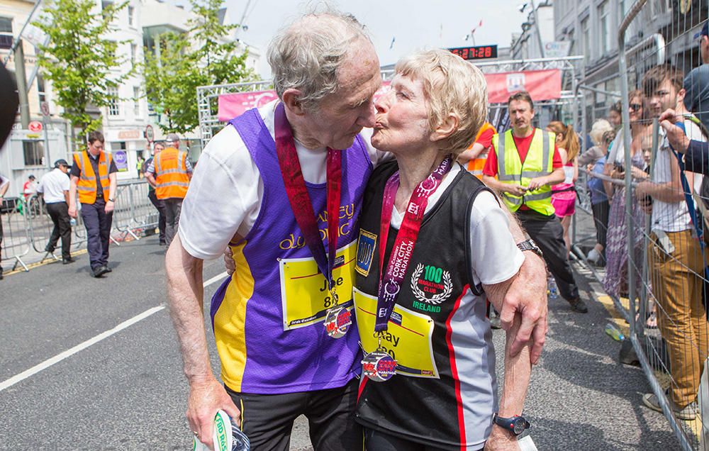 Y el 6 de junio de 2016, en el Maratón de Cork City, en Irlanda del sur, Joe volvió a tomar la mano de Kay. Esta vez, unos cuantos metros antes de la línea de llegada. A los 80 años, Kay completó su maratón número 113 mientras Joe completó su 29. Habían prometido que sería su último maratón para celebrar su 57 aniversario de casado.