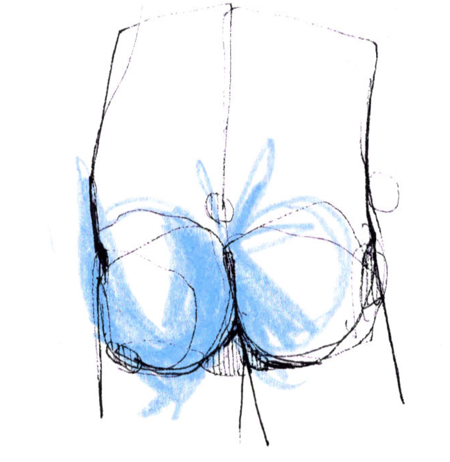 Carnoso y prominente. Requiere un buen trabajo de musculación y entrenamiento aeróbico para mantenerlo en su sitio.