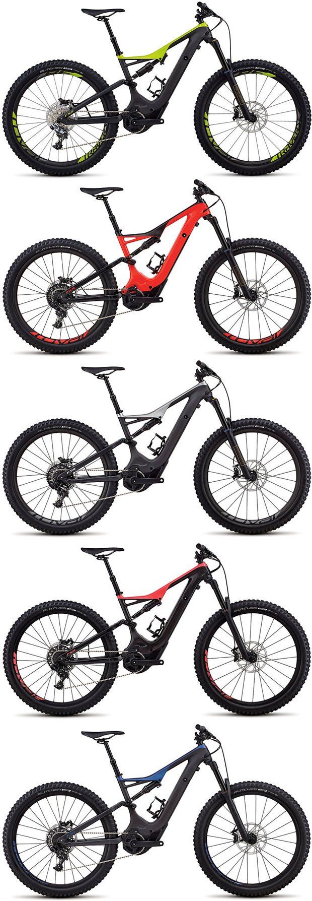 - Specialized Turbo Levo FSR Comp Carbon 6Fattie/29: con cuadro de carbono FACT 9m y basculante de aluminio M5, horquilla RockShox Revelation RC de 150 milímetros de recorrido, amortiguador RockShox Monarch RT3, transmisión trasera SRAM GX de 11 velocidades, frenos SRAM Guide RE, tija telescópica Command Post IRcc, ruedas de aluminio Roval y neumáticos Butcher GRID en 27.5x2.8 pulgadas. Dos colores a elegir.