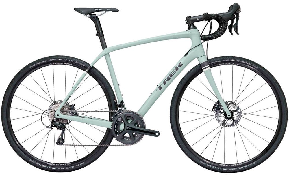 Con cuadro de carbono OCLV Serie 500, IsoSpeed delantero y trasero, transmisión Shimano 105 de 2x11 velocidades, frenos hidráulicos de disco Shimano RS805, ruedas Bontrager TR Disc y neumáticos Schwalbe G-One Allround 700x35c. Peso declarado de 9.17 kilogramos (talla 56) y precio recomendado de u$s 2.999