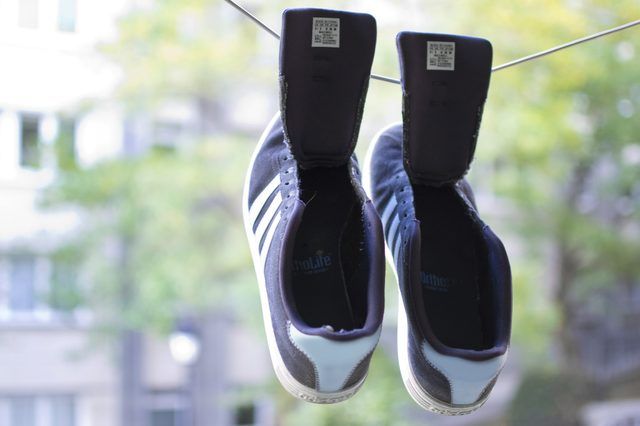 Incluso si están mojadas por haber corrido bajo la lluvia, lo mejor es secar las zapatillas con un trapo y luego rellenarlas con papel, para que absorba el agua. El calor directo de la estufa o del radiador puede deteriorar y deformar la forma del calzado.