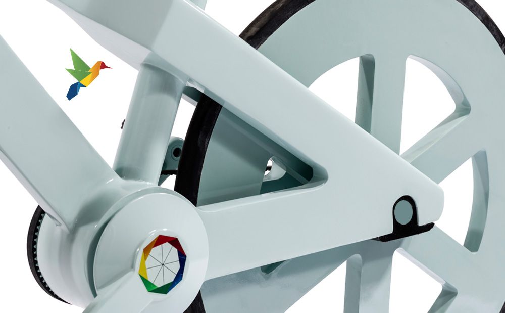 Luego las piezas de la bici se endurecen con una resina especial que aumenta la durabilidad y la fuerza. Más tarde se le añade una capa impermeable y una pintura antes de montar las diferentes piezas.