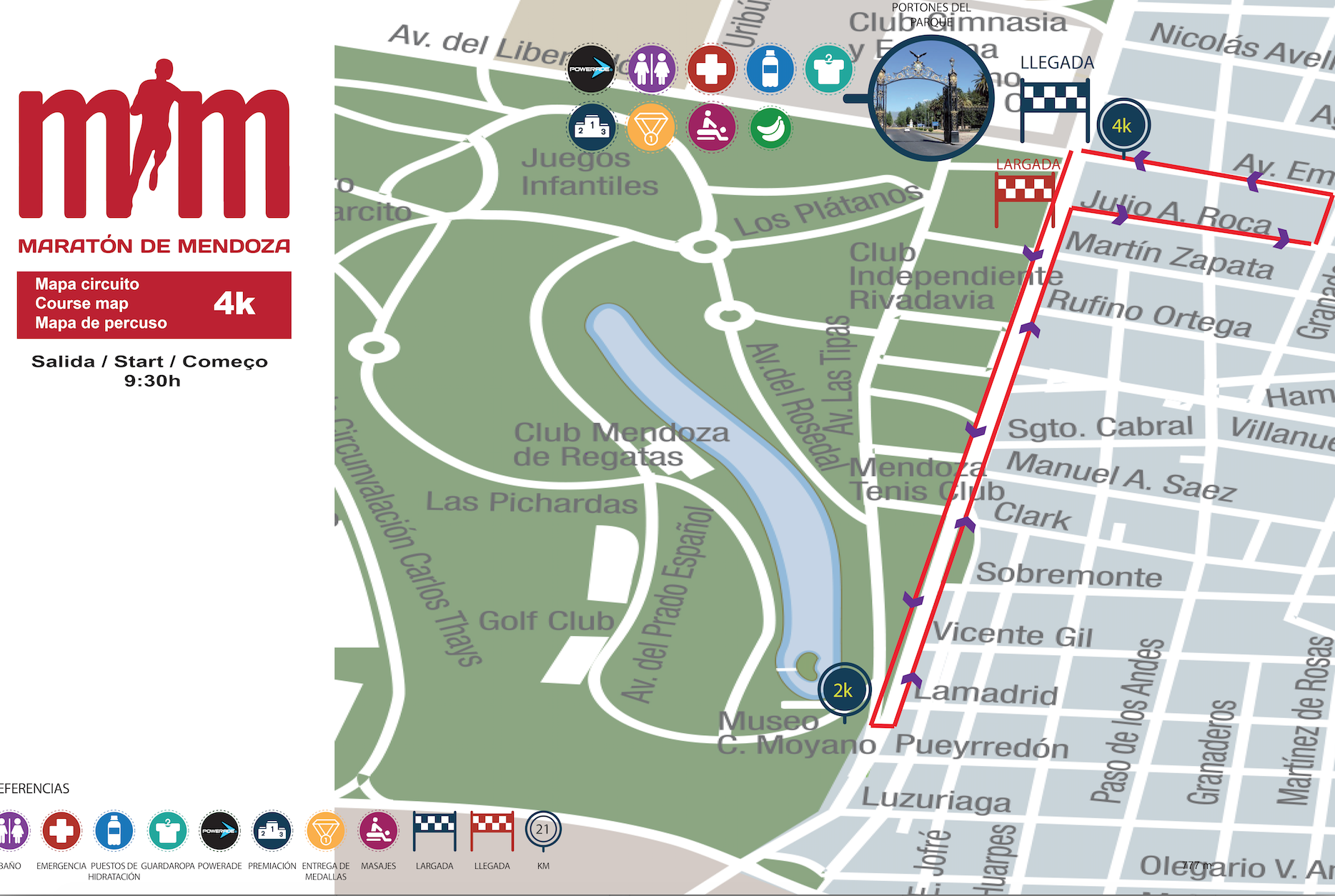 Un circuito plano de 4k, que sale y llega desde el mismo punto: los Portones del Parque General San Martin.