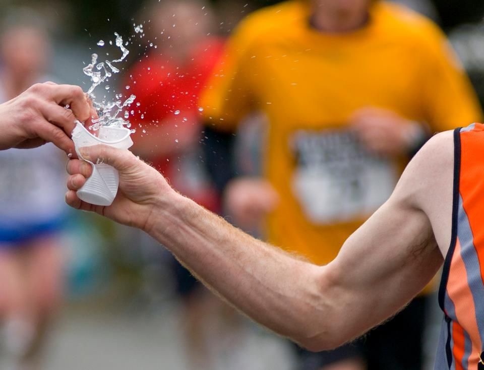 Quieren su agua y la quieren ya. Si tienen que cruzarse delante de una docena de compañeros por agarra la primera botella de la primera mesa de un puesto, lo harán y no dudara en agarrar dos y tres botellas, que luego tirara en el medio del camino, sin importar de que te caigas.