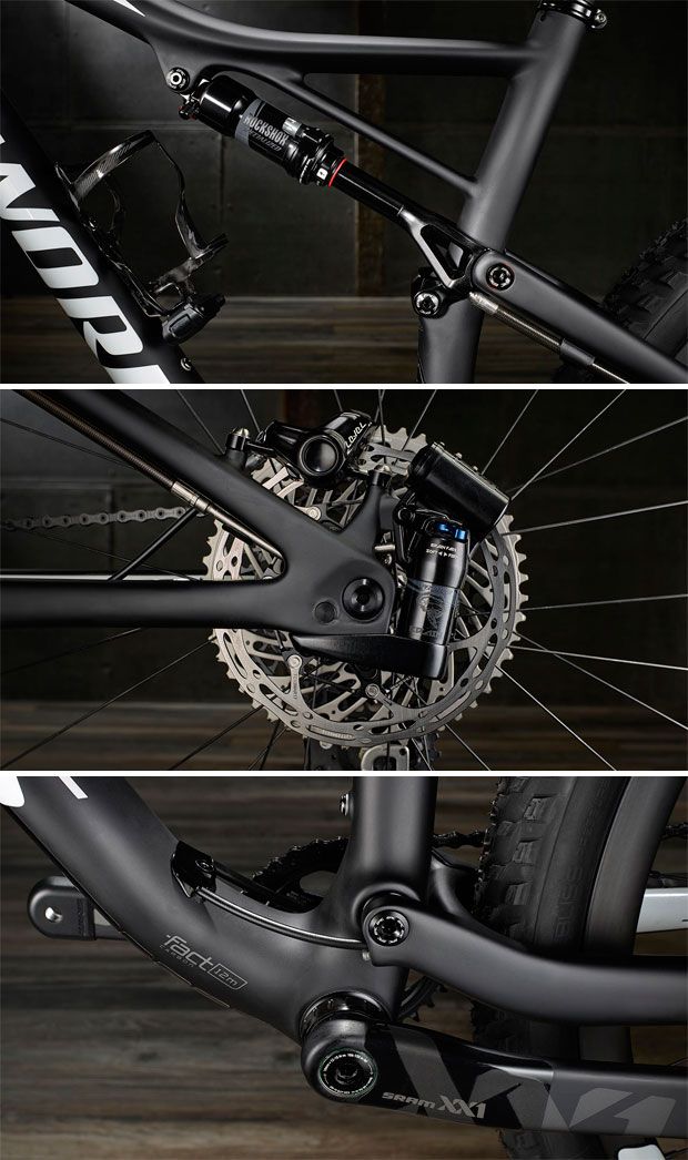 El sistema de suspensión de la Specialized Epic 2018 también se renueva por completo, con un basculante trasero 240 gramos más ligero que en su versión anterior. ¿Cómo se consigue este peso? Sacrificando el sistema FSR en favor de un sistema monopivote apoyado por el diseño de zonas flexibles en las vainas y tirantes que, en combinación con el novedoso Brain 2.0, no solo emula el rendimiento del sistema FSR anterior, sino que lo supera en eficiencia.